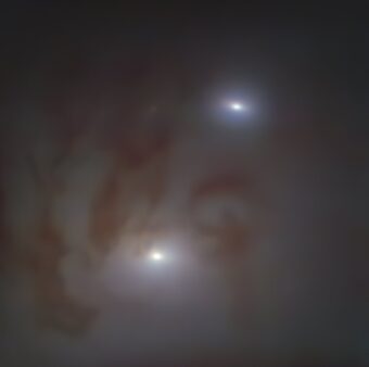 Nell’immagine sono visibili anche due punti luminosi al centro della galassia, un altro segno rivelatore del suo notevole passato. Il cuore di Ngc 7727 è ancora costituito dai due nuclei galattici originali, ciascuno dei quali ospita un buco nero supermassiccio. Situata a circa 89 milioni di anni luce dalla Terra, nella costellazione dell’Acquario, questa è la coppia di buchi neri supermassicci più vicina a noi.