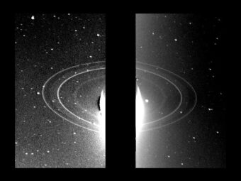 Tutto qui? Niente affatto. Oltre agli anelli – leggermente inclinati, dato l’orientamento del suo asse di rotazione rispetto al piano della sua orbita attorno al Sole – le immagini mostrano anche alcune caratteristiche interessanti della sua spessa atmosfera e sette delle quattordici lune del pianeta. Non avevamo una vista così chiara del pianeta dai tempi della sonda Voyager 2 della Nasa, il primo e unico veicolo spaziale a sorvolare il gigante di ghiaccio per poche ore nel 1989, oltre trent’anni fa.