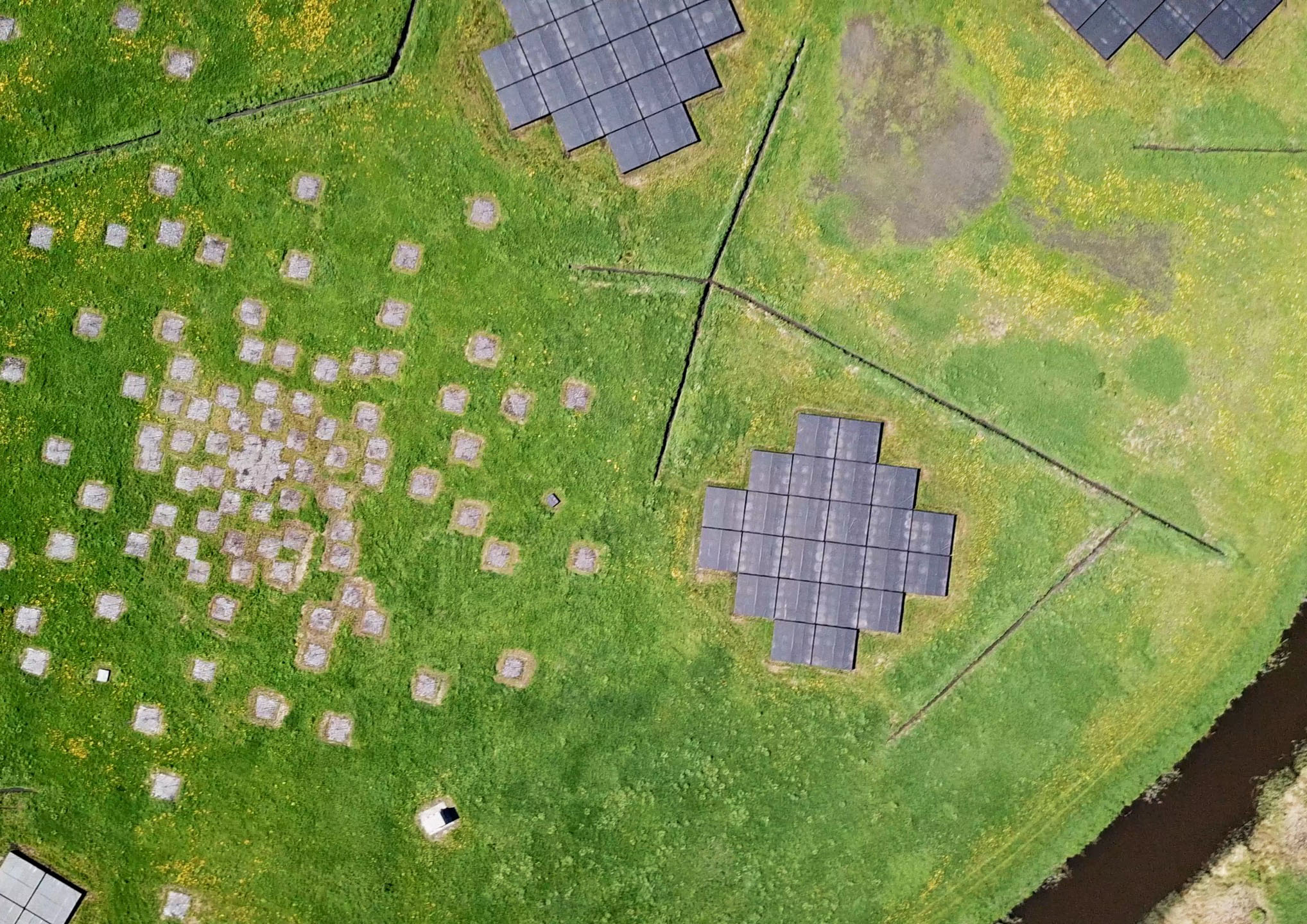 Visione dall’alto della zona centrale di antenne (di due tipi differenti) che costituiscono Lofar Crediti: Virginia Cuciti, Astron