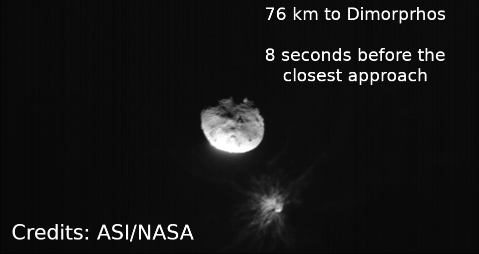 L’incontro dell’11 ottobre, aperto dall’amministratore della Nasa, Bill Nelson, che ha confermato la deviazione dell’asteroide, ha visto la partecipazione del presidente dell’Agenzia spaziale italiana, Giorgio Saccoccia, che ha mostrato le ultime immagini elaborate provenienti dal satellite LiciaCube, con dei video in timelapse che mostrano l’impatto a partire da alcuni secondi prima fino a circa 30 dopo.