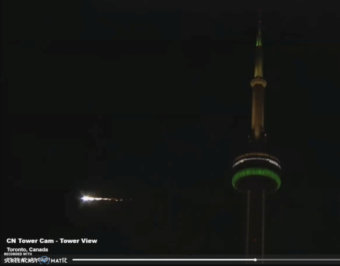 Il bolide generato dalla caduta in atmosfera dell’asteroide near-Earth 2022 WJ1 ripreso da una webcam puntata sulla CN Tower di Toronto (Canada)