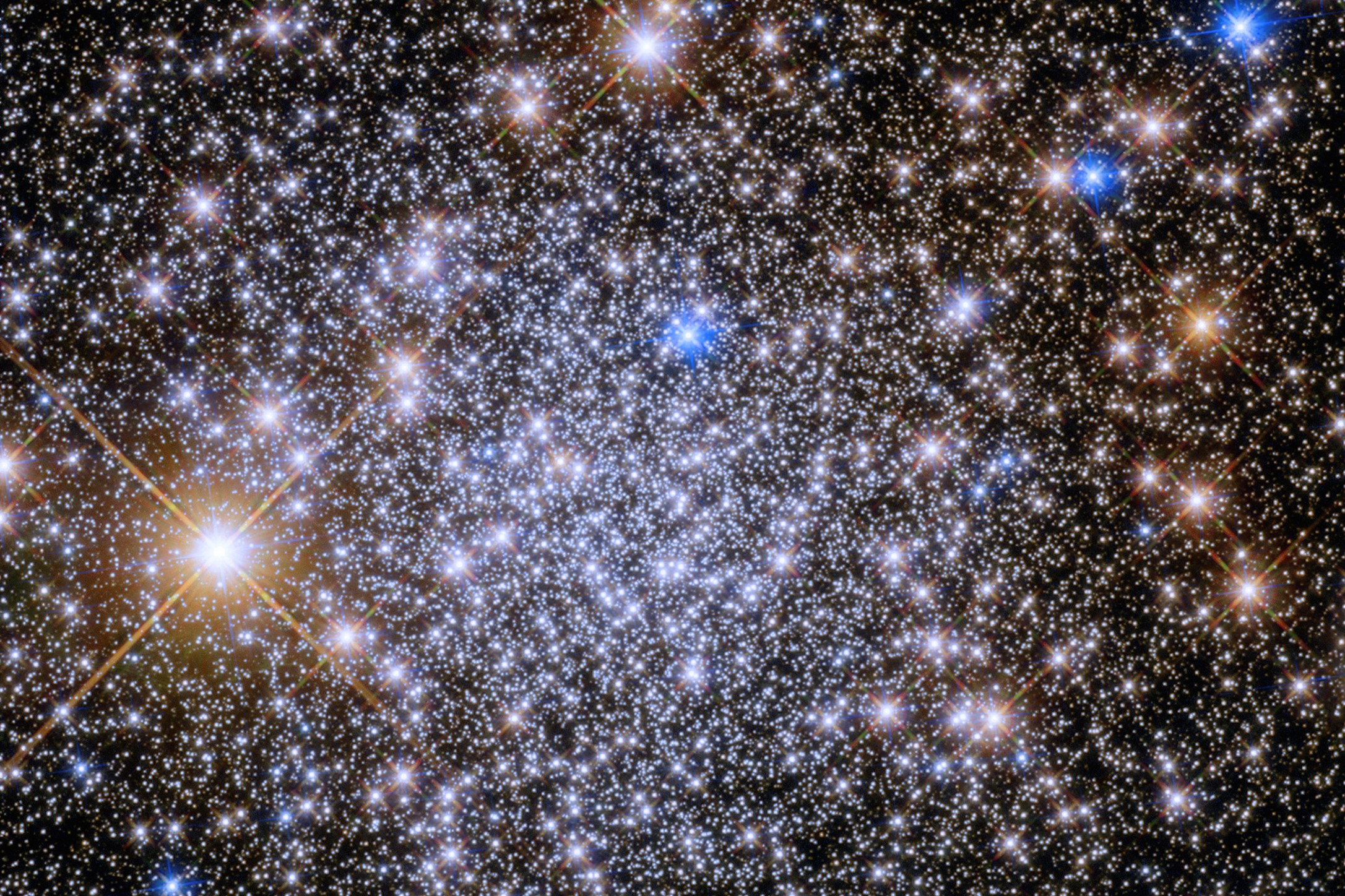 Questo scintillante raggruppamento di stelle è Pismis 26, un antico ammasso globulare a circa 23mila anni luce di distanza. Gli ammassi globulari sono gruppi di migliaia di stelle, di forma quasi sferica, tenuti insieme dalla reciproca attrazione gravitazionale. Nell’immagine le vedete brillare luminose sullo sfondo nero. Verso la periferia dell’ammasso ne potete distinguere alcune rosse e altre blu. Fu l’astronoma armena Paris Pismis che scoprì per la prima volta l’ammasso nel lontano 1959, presso l’Osservatorio Tonantzintla in Messico, assegnandogli il nome Tonantzintla 2.