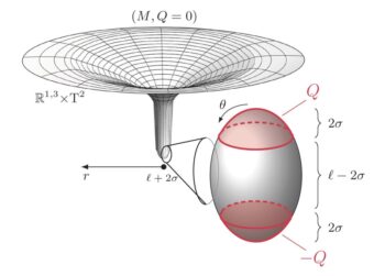 «Nel caso dei solitoni topologici», continua Berti, «l’idea è diversa. Non si parte dalla teoria di Einstein, ma da teorie delle stringhe in più dimensioni. Ciò è interessante perché permette di risolvere il problema della singolarità vera che esiste al centro di un buco nero. Nelle soluzioni del nostro articolo, la singolarità centrale viene sostituita da una soluzione con topologia speciale: non c’è alcuna singolarità fisica, e il punto a curvatura infinita al centro del buco nero viene sostituito da una “bolla” che si estende nelle dimensioni extra (invisibili)».
