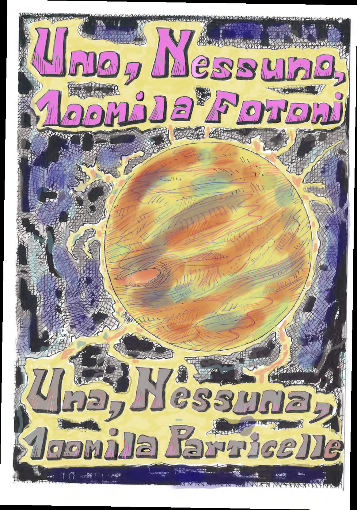Copertina del fumetto di Angelo Adamo di Inaf “Uno, nessuno, centomila fotoni; una, nessuna, centomila particelle”. Crediti: A. Adamo
