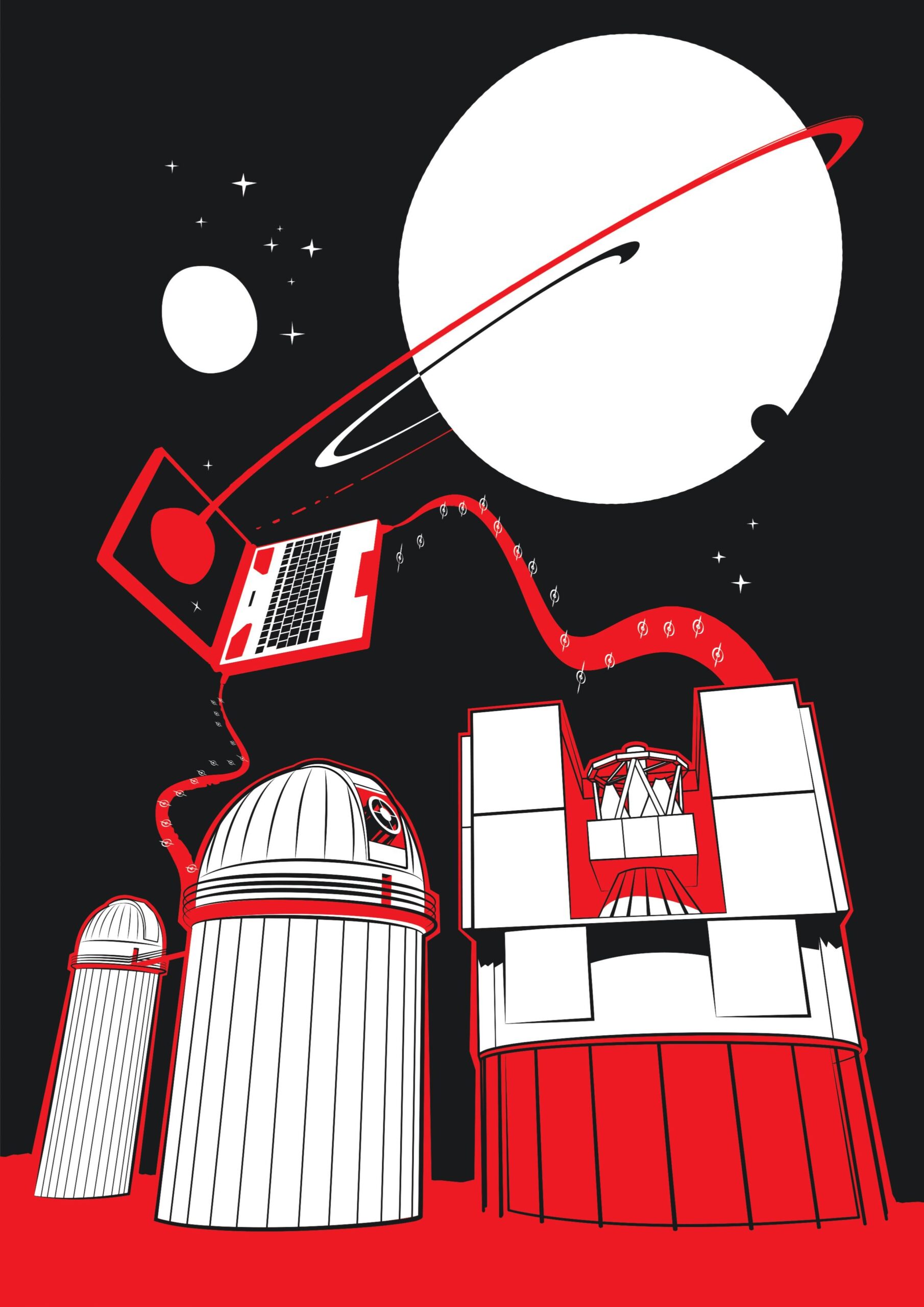 Illustrazione che celebra la scoperta del pianeta circumbinario BEBOP-1c con il metodo della velocità radiale, grazie agli spettrografi ESPRESSO del Very Large Telescope in Cile e HARPS del telescopio da 3,6 m dell’Eso, sempre in Cile. Crediti: Amanda Smith / University of Birmingham