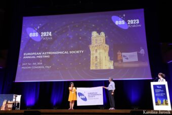Il meeting ha raccolto in Polonia circa 1500 ricercatrici e ricercatori da tutto il mondo, affiancati da un centinaio di colleghi collegati virtualmente. Molteplici gli argomenti trattati, dagli esopianeti alla formazione stellare e l’evoluzione galattica, a un anno dalla pubblicazione delle prime, rivoluzionarie immagini di Jwst. Si è parlato anche dell’applicazione dell’intelligenza artificiale all’astronomia, della diversità della comunità di ricerca e delle sfide del public engagement. Secondo il rituale, al termine della cerimonia di chiusura, il comitato polacco che ha collaborato all’organizzazione del convegno ha passato la bandiera ai colleghi italiani: il prossimo meeting annuale dell’Eas si terrà infatti a Padova, dal primo al cinque luglio 2024.