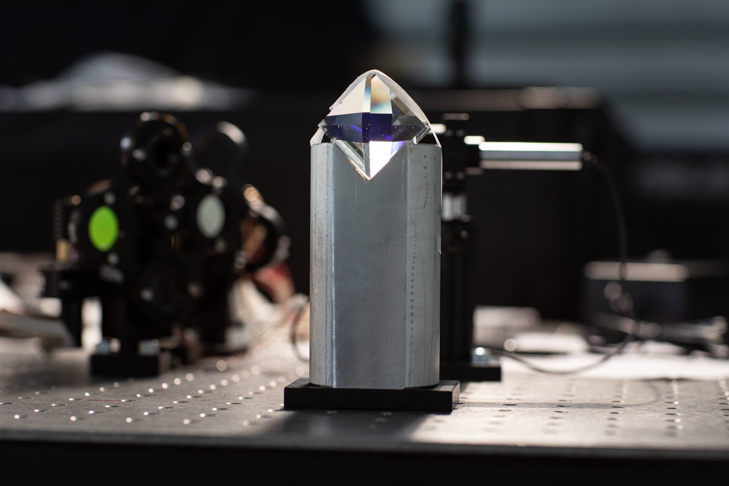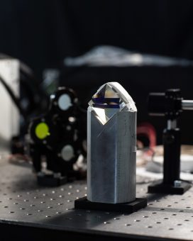 Il sensore di fronte d’onda a piramide nei laboratori di ottica adattiva dell’Inaf di Arcetri a Firenze. Crediti: R. Bonuccelli/Ufficio stampa Inaf