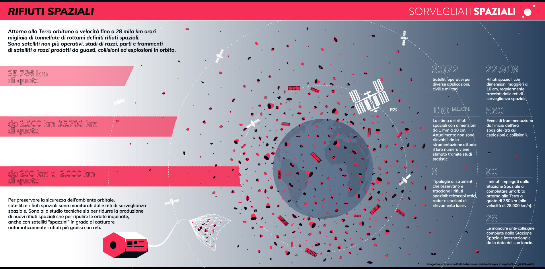 L’annuncio è arrivato martedì dalla stessa Fcc. È la prima multa per smaltimento di “spazzatura spaziale” non secondo le regole, dicevamo, ma probabilmente non l’ultima. Il problema dello space debris, come si dice in inglese, si fa infatti di anno in anno più pressante. E più pesante: come riporta il sito Sorvegliati spaziali dell’Inaf, sono circa 6500 tonnellate – in costante aumento – i rottami definiti complessivamente “rifiuti spaziali”, che affiancano circa 2000 tonnellate “utili” di satelliti operativi.