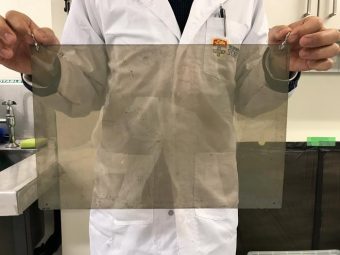 Una sezione della pellicola dopo lo sviluppo. Le tracce delle particelle prodotte dagli impatti dei raggi gamma sono visibili come piccoli punti grigiastri su tutto il piano. Crediti: Graine Collaboration