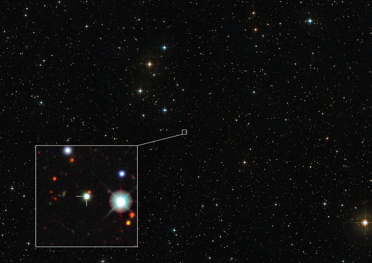 E, cosa sorprendente, questo quasar da record era solo apparentemente nascosto. «È una sorpresa che sia rimasto sconosciuto fino a oggi, quando conosciamo già un milione circa di quasar meno notevoli. Finora ci ha guardato letteralmente negli occhi!», dice il coautore Christopher Onken, astronomo all’Anu. Aggiunge che questo oggetto compare nelle immagini della Schmidt Southern Sky Survey dell’Eso, risalente al 1980, ma non è stato riconosciuto come quasar fino a decenni dopo.