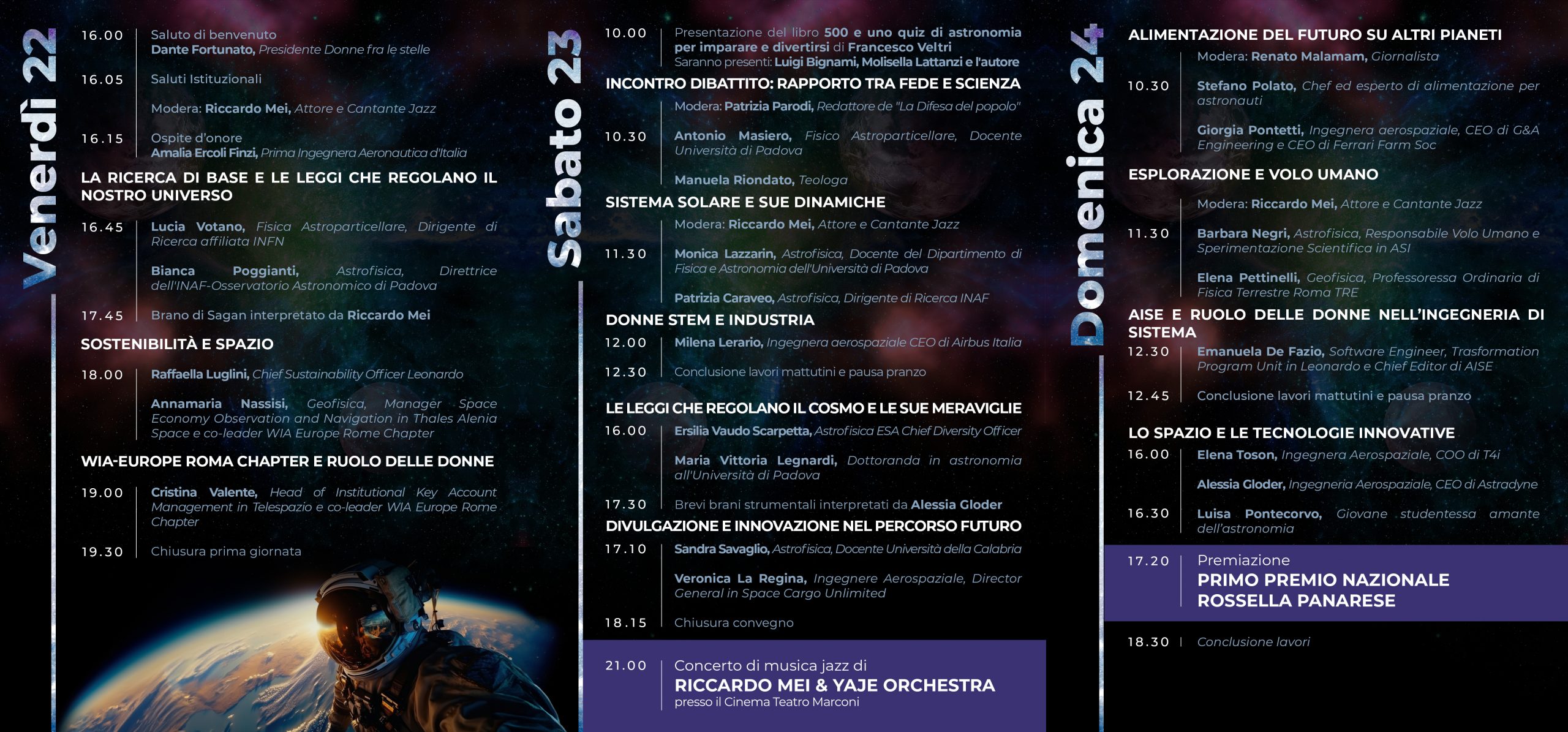 Il programma dettagliato (cliccare per ingrandire) della terza edizione di “Donne fra le stelle”, che si terrà il 22, 23, 24 marzo ad Abano Terme (Pd), al Teatro Marconi