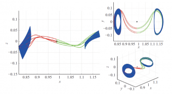«Seguendo la rotta tracciata da Poincaré agli inizi del secolo scorso, ricercatori da tutto il mondo hanno continuato a ricercare soluzioni particolari del problema dei tre corpi sempre più complesse e che possano aiutarci a raggiungere una comprensione superiore del problema caotico. L’avvento del computer e del calcolo scientifico ha portato enormi benefici al settore, inclusa la possibilità di calcolare non solo intere famiglie di orbite periodiche (orbite che si ripetono dopo un certo periodo), ma anche di orbite quasi-periodiche, ovvero di orbite che non si ripetono esattamente, ma che finiscono col ricoprire una superficie topologicamente equivalente a quella di una ciambella. Come per le orbite periodiche, anche le orbite quasi-periodiche possono essere instabili e avere connessioni eterocline che permettono a un satellite di passare da una traiettoria nei pressi di un punto lagrangiano a un’altra in un punto lagrangiano diverso nello spazio delle fasi. Il vantaggio è che, essendo varietà di dimensione maggiore rispetto alle orbite periodiche, le connessioni eterocline per le orbite quasi-periodiche sono molto più frequenti e quindi più opportune per il disegno di traiettorie satellitari».