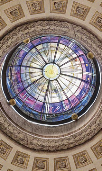 La cupola in vetro dell’artista italo-americano Narcissus Quagliata realizzata per Santa Maria degli Angeli in occasione del Grande Giubileo dell’anno 2000, è stata collocata a 28 metri di altezza nel vestibolo circolare. Crediti: Maria Teresa Menna/Inaf