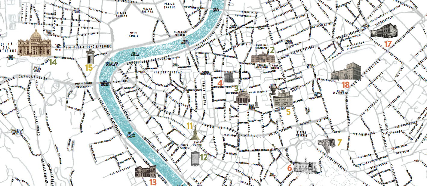 Roma si svela così nei suoi luoghi celesti: le rappresentazioni di stelle, segni zodiacali e pianeti sono indicati in mappa con l’arancione; troverete i luoghi del tempo come orologi e meridiane segnalati in verde; infine, in giallo, le tappe dedicate all’astronomia di ieri e di oggi e ai suoi protagonisti.