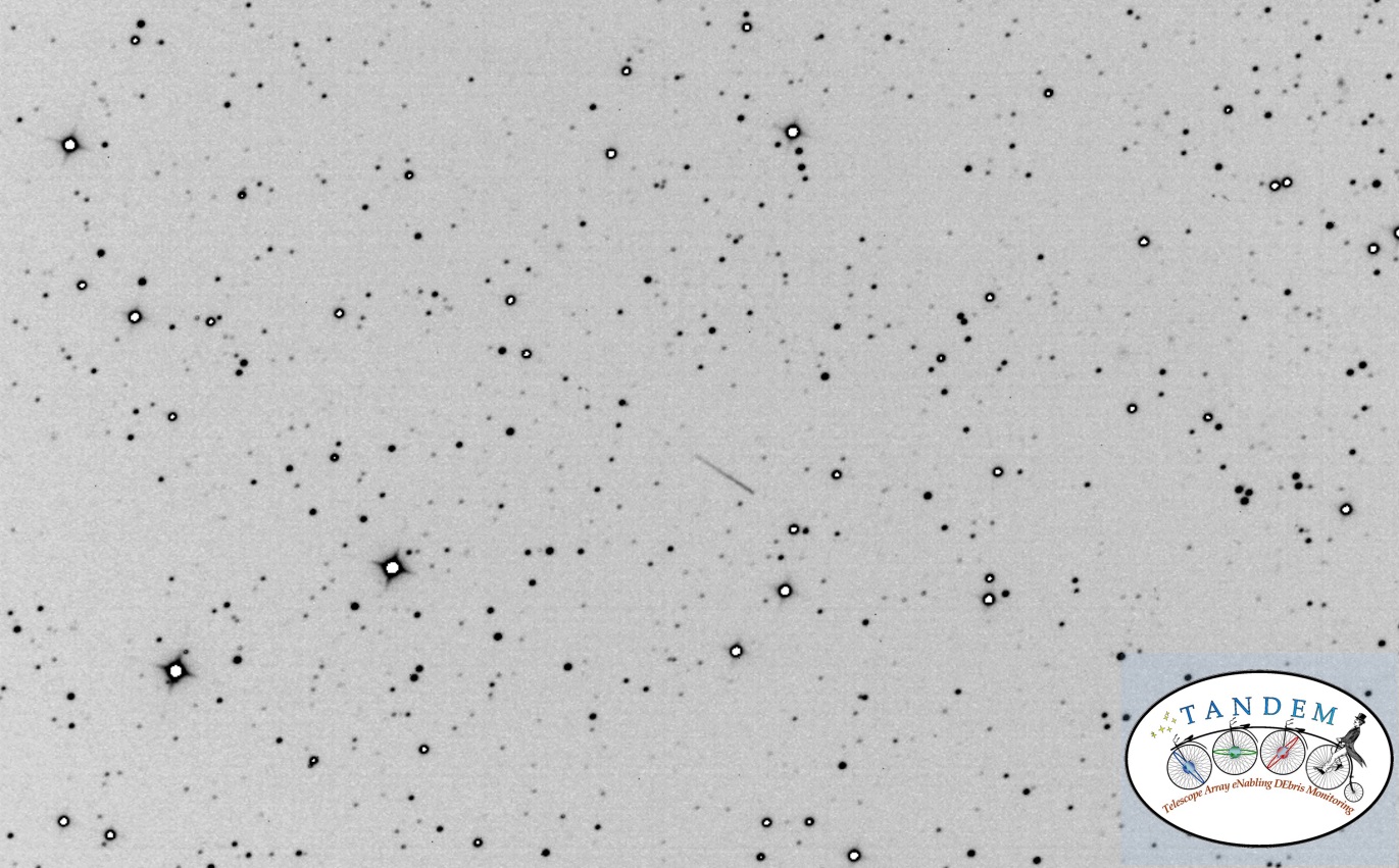 Nella seconda parte della notte, quindi all’alba del 1 luglio, anche l’asteroide 2024 MK è arrivato alla portata di Tandem. Essendo molto più piccolo di 2011 UL21 e in rapido allontanamento, questo Nea era già di magnitudine +14,5, ma ancora nel range d’azione del sistema ed è bastata una posa di pochi minuti per catturarne la strisciata. A differenza di 2011 UL21, qui la striscia si mostra progressivamente più debole: la causa è la rapida rotazione dell’asteroide attorno al proprio asse, abbinata alla forma allungata, che ne provoca un cambiamento repentino di luminosità. Per conoscere il valore esatto del periodo bisognerà analizzare con calma le immagini riprese, ma sembra dell’ordine di 15-30 minuti.
