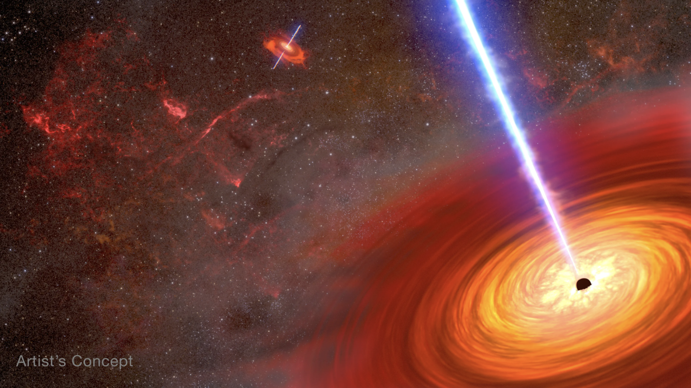 I due buchi neri supermassicci erano un tempo al centro delle rispettive galassie ospiti, che si sono fuse. Anche il loro destino sarà quello di fondersi. Continueranno ad avvicinarsi a spirale fino a incontrarsi, forse tra cento milioni di anni, facendo vibrare il tessuto dello spazio e del tempo sotto forma di onde gravitazionali.