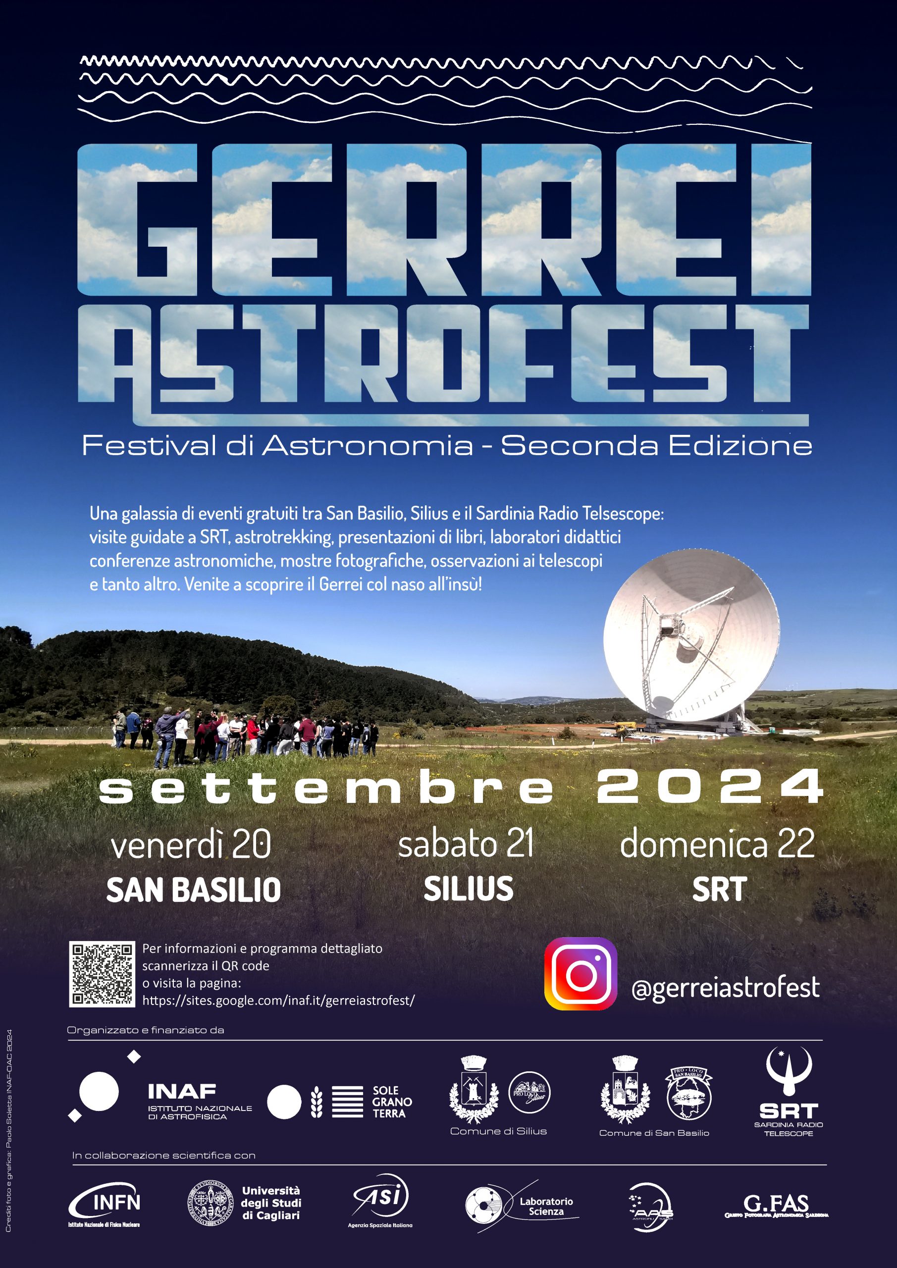 Dopo la prima edizione del 2022 che aveva coinvolto il comune di San Basilio, che ospita il radiotelescopio, quest’anno è entrato nel partenariato anche il comune di Silius, affiancati dallo storico patrocinio del Gal Sole Grano Terra.