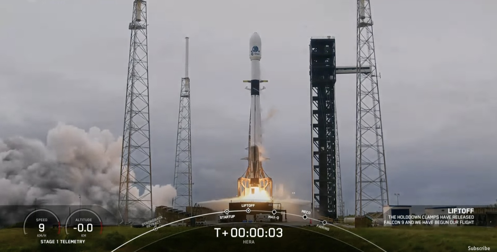 Il lancio di Hera è avvenuto alle 16:52 ora italiana dalla rampa Slc-40 di Cape Canaveral utilizzando un vettore Falcon 9 della società americana SpaceX.