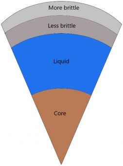 Dando come input al sistema diversi stress a cui il satellite naturale è sottoposto (mareale, di ispessimento del guscio di ghiaccio, di ri-orientamento planetario), l’unico modello che ha prodotto le caratteristiche superficiali della luna ha richiesto la presenza di qualcosa di inaspettato: l’esistenza sotto la superficie ghiacciata di Miranda di un vasto oceano di acqua liquida. I risultati della simulazione suggeriscono che l’oceano sia esistito negli ultimi 100-500 milioni di anni di storia del satellite, che fosse profondo almeno cento chilometri – riempiendo quasi metà della luna – e che fosse nascosto sotto una crosta ghiacciata spessa non più di trenta chilometri.