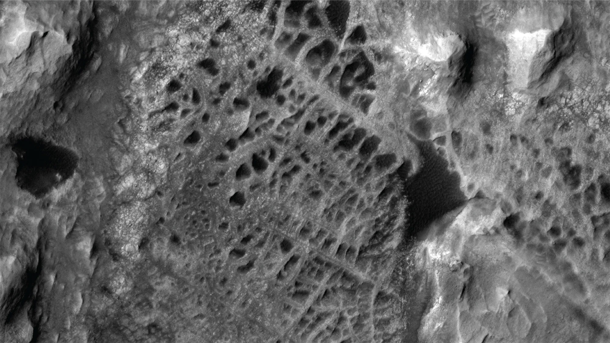 Immagine che mostra la struttura boxwork di Marte. Vista ottenuta dal Mars Reconnaissance Orbiter della Nasa il 10 dicembre 2006. Il rover Curiosity studierà strutture geologiche simili a queste nel 2025. Crediti: Nasa/Jpl-Caltech/University of Arizona