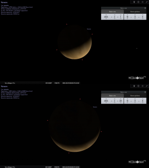 Venere come appare a inizio (immagine in alto) e fine (immagine in basso) novembre 2025. Simulazione con software Stellarium.