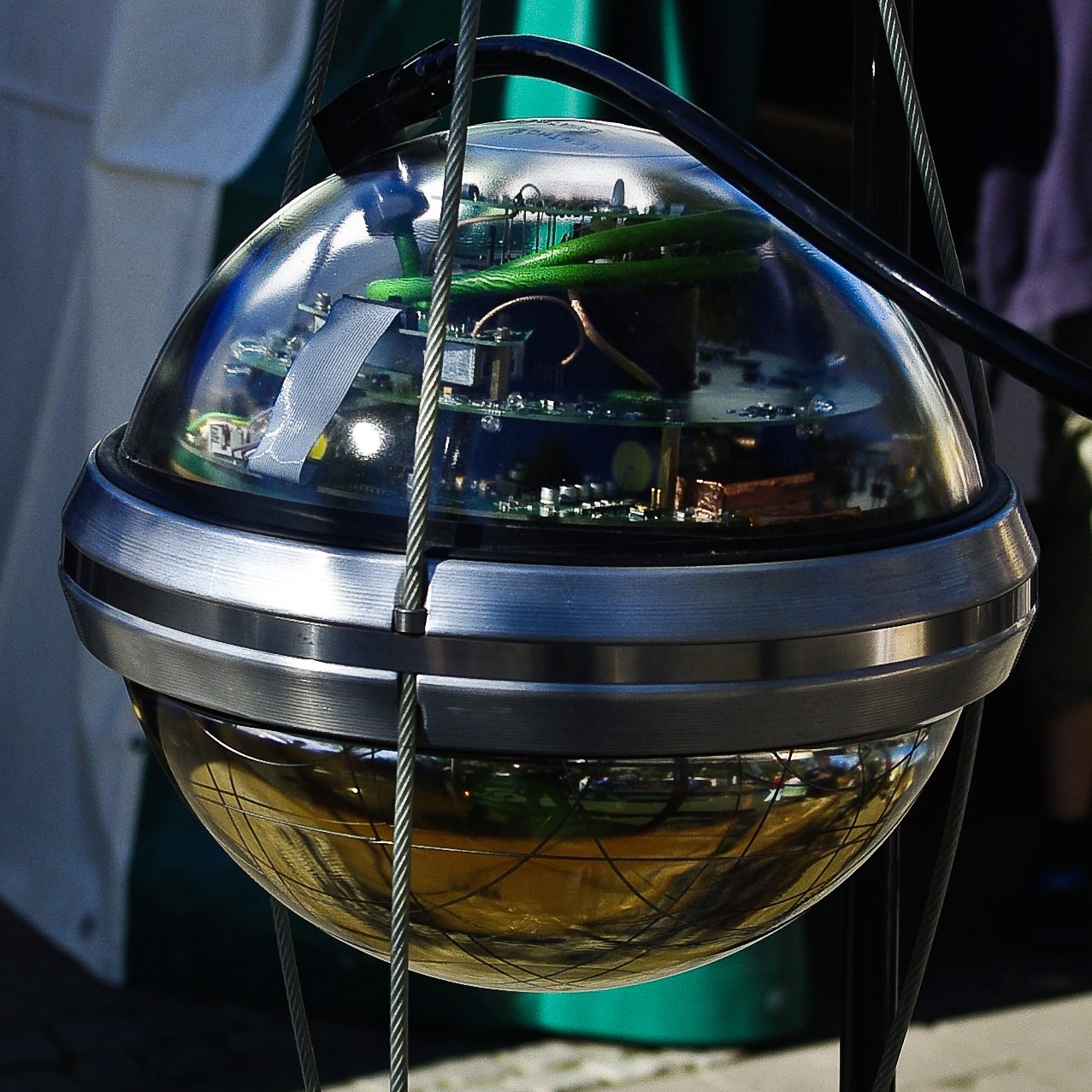 Una delle oltre 5mila sonde che ricevono la luce (Dom) equipaggiato con un fotomoltiplicatore, il cui fotocatodo è visibile nell’emisfero inferiore. Crediti: Taavi Adamberg