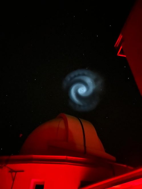 «All’inizio ho pensato che stessi sognando: una gigantesca spirale, chiaramente visibile a occhio nudo, era sospesa in cielo sopra la cupola del telescopio principale dell’Osservatorio Astronomico», racconta Giagio. «La spirale si muoveva lentamente, ma nettamente, da nord verso est. Al centro si vedeva un punto luminoso, come quelli dei satelliti artificiali. Dopo qualche minuto, è scomparsa».
