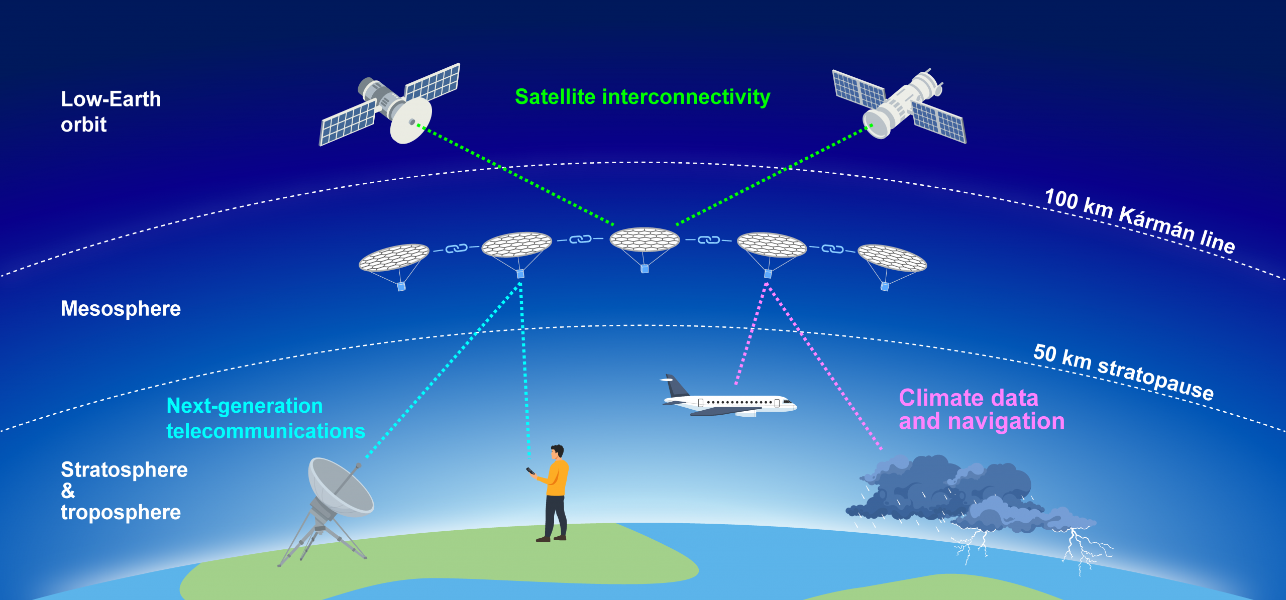 Tra le altre potenziali applicazioni figurano le telecomunicazioni, in particolare in contesti di difesa o di risposta alle emergenze. Una flotta di questi dispositivi potrebbe formare un array fluttuante di antenne, in grado di offrire capacità di trasmissione dati paragonabili a quelle dei satelliti in orbita bassa, come Starlink, ma con una latenza inferiore grazie alla loro maggiore vicinanza al suolo.
