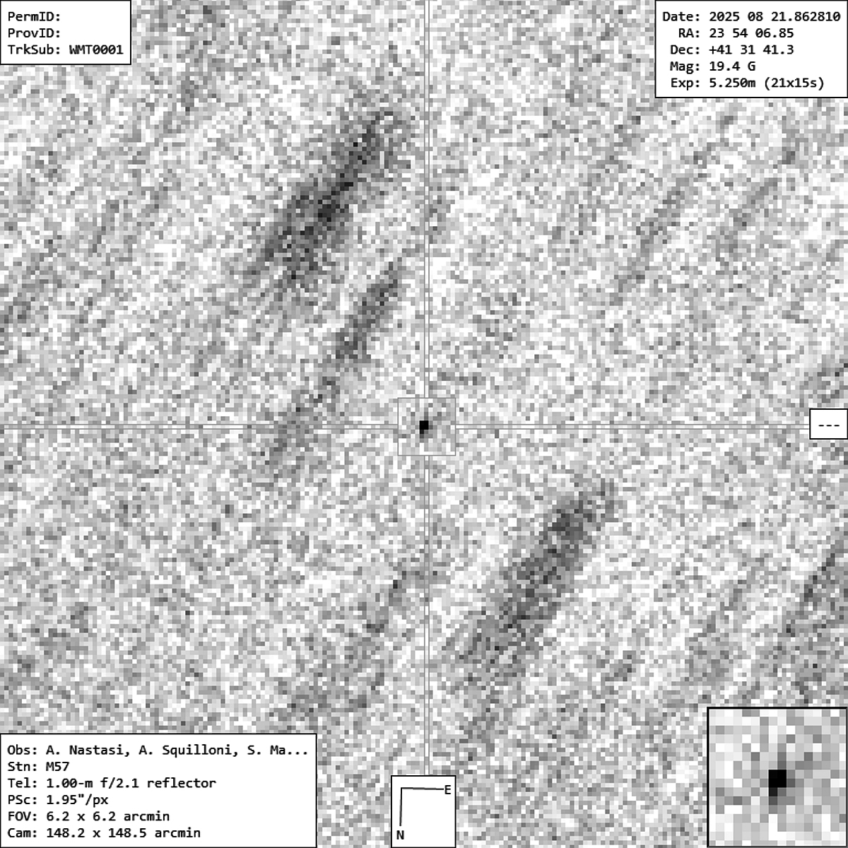 Il Nea 2025 QK3 ripreso fra il 21 e il 22 agosto 2025 dal telescopio Wmt della fondazione Gal Hassin. Crediti: Fondazione Gal Hassin