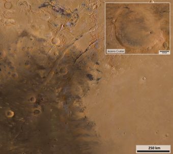 Il cratere Jezero su Marte ripreso dalla sonda Mars Express dell’Agenzia spaziale europea (Esa). Crediti: Esa/Dlr/Fu Berlin