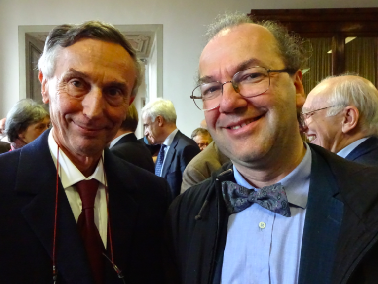 Piero Salinari (a sinistra) e Roberto Ragazzoni all’Accademia Nazionale dei Lincei, in occasione della consegna del premio “Antonio Feltrinelli” 2016 per l’Astronomia. Crediti: Inaf