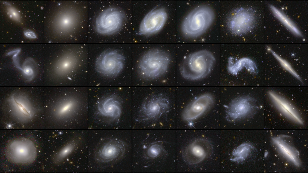 Collage di 28 galassie tra le più spettacolari all’interno della Euclid Quick Data Release 1 (cliccare per ingrandire). Crediti: Esa/Euclid/Euclid Consortium/Nasa, image processing by J.-C. Cuillandre, E. Bertin, G. Anselmi