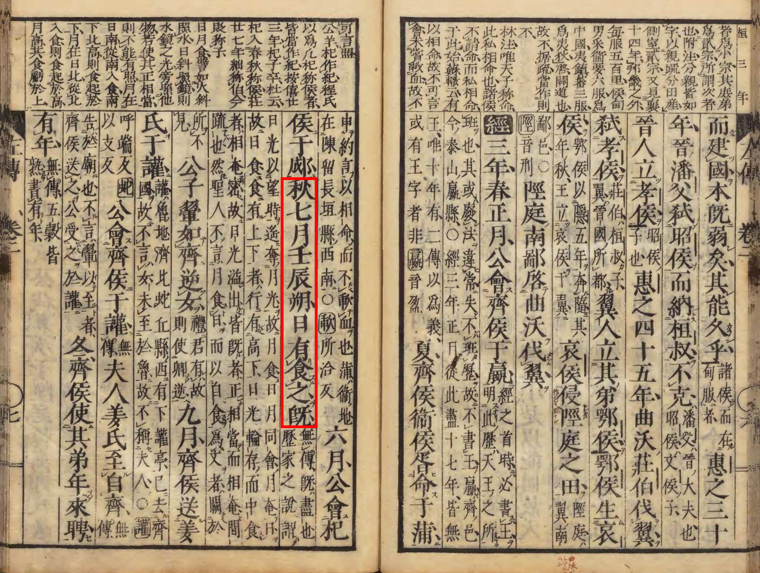 Antico testo cinese tratto dagli Annali delle Primavere e degli Autunni, che contiene la prima testimonianza scritta databile di un’eclissi solare totale del 709 a.C. Il testo afferma: “In autunno, nel settimo mese, nel giorno di renchen, il primo giorno del mese, il Sole fu totalmente eclissato”. Il termine “renchen” si riferisce a un giorno specifico nel tradizionale ciclo del calendario cinese di 60 giorni. Fonte: Archivi Nazionali del Giappone