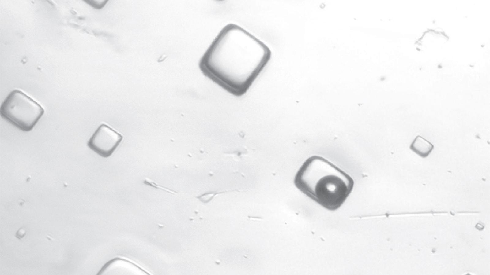 Immagine microscopica delle inclusioni fluide in cristalli di halite risalenti a 1,4 miliardi di anni fa, che conservano aria e salamoia antiche. Crediti: Justin Park/Rpi