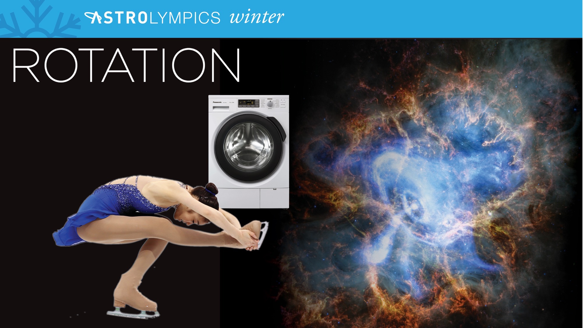 Esempio del concetto di “rotazione” applicato al pattinaggio artistico su ghiaccio e alla rotazione della stella di neutroni al centro della Nebulosa del Granchio. Crediti: Nasa/Chandra X-ray Observatory