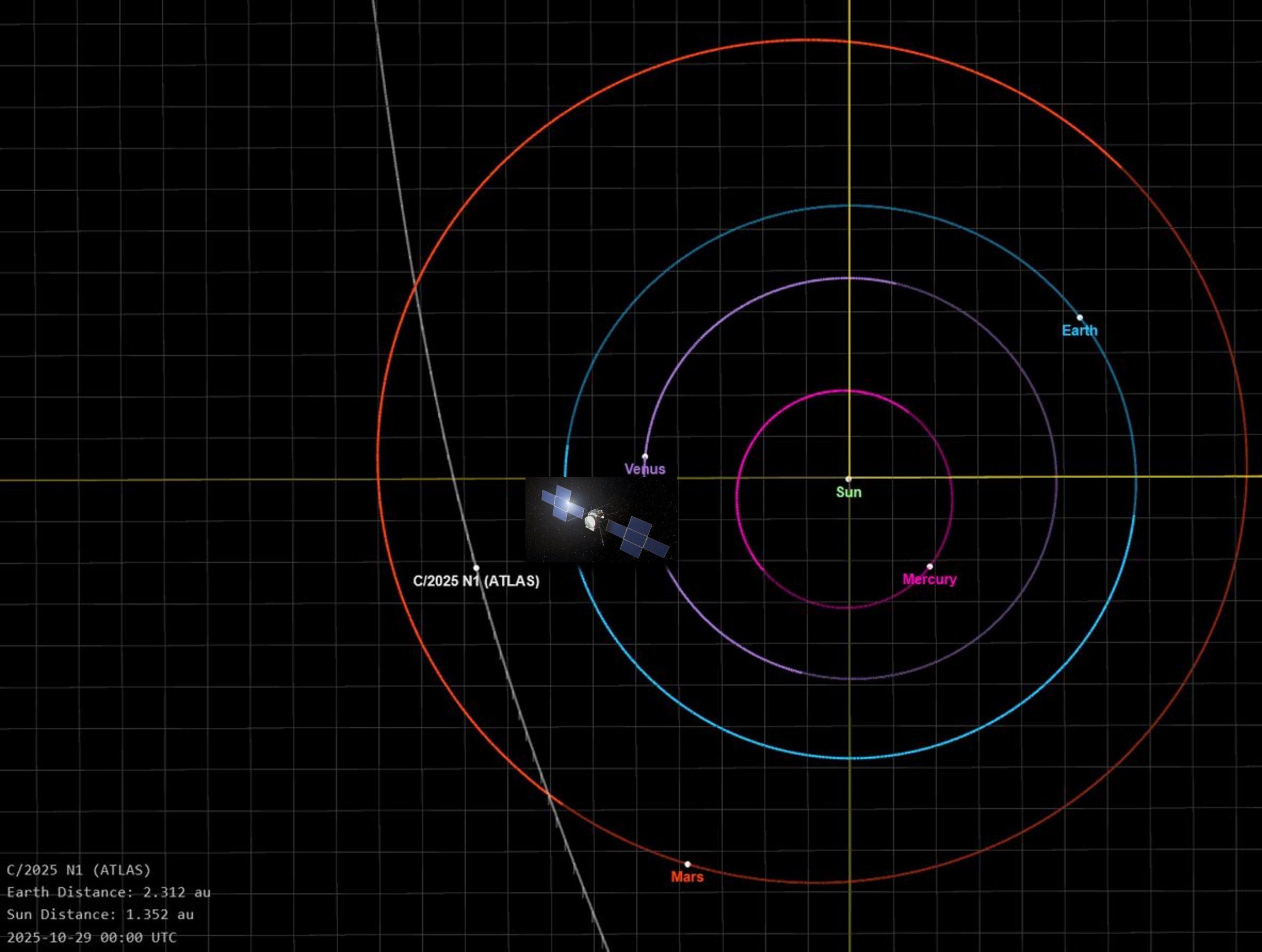 Immediatamente, tutti i principali telescopi terrestri e spaziali hanno organizzato campagne osservative per studiare e caratterizzare questo visitatore interstellare. Campagne che sono proseguite nei mesi successivi fino ai primi di ottobre 2025, quando purtroppo l’elongazione della cometa ha raggiunto valori troppo bassi per poter essere “puntata” dalla Terra: 3I/Atlas si è “nascosta” dall’altra parte del Sole proprio nelle settimane intorno al suo passaggio al perielio, quando di solito l’attività cometaria – espulsione di polvere e gas, formazione della o delle code – è al suo massimo, ed è diventata invisibile agli occhi terrestri. Un colpo di sfortuna, perché proprio le ultime osservazioni possibili avevano dato indicazioni dell’inizio di un aumento inusuale di luminosità rispetto al trend delle settimane precedenti.