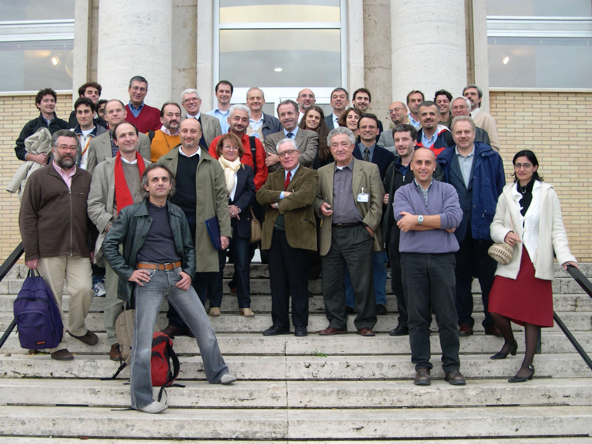 Foto di gruppo al workshop del 2003 organizzato per celebrare i 70 anni di Alfonso Cavaliere, qui al centro con la cravatta rossa. Crediti: A. Fontana