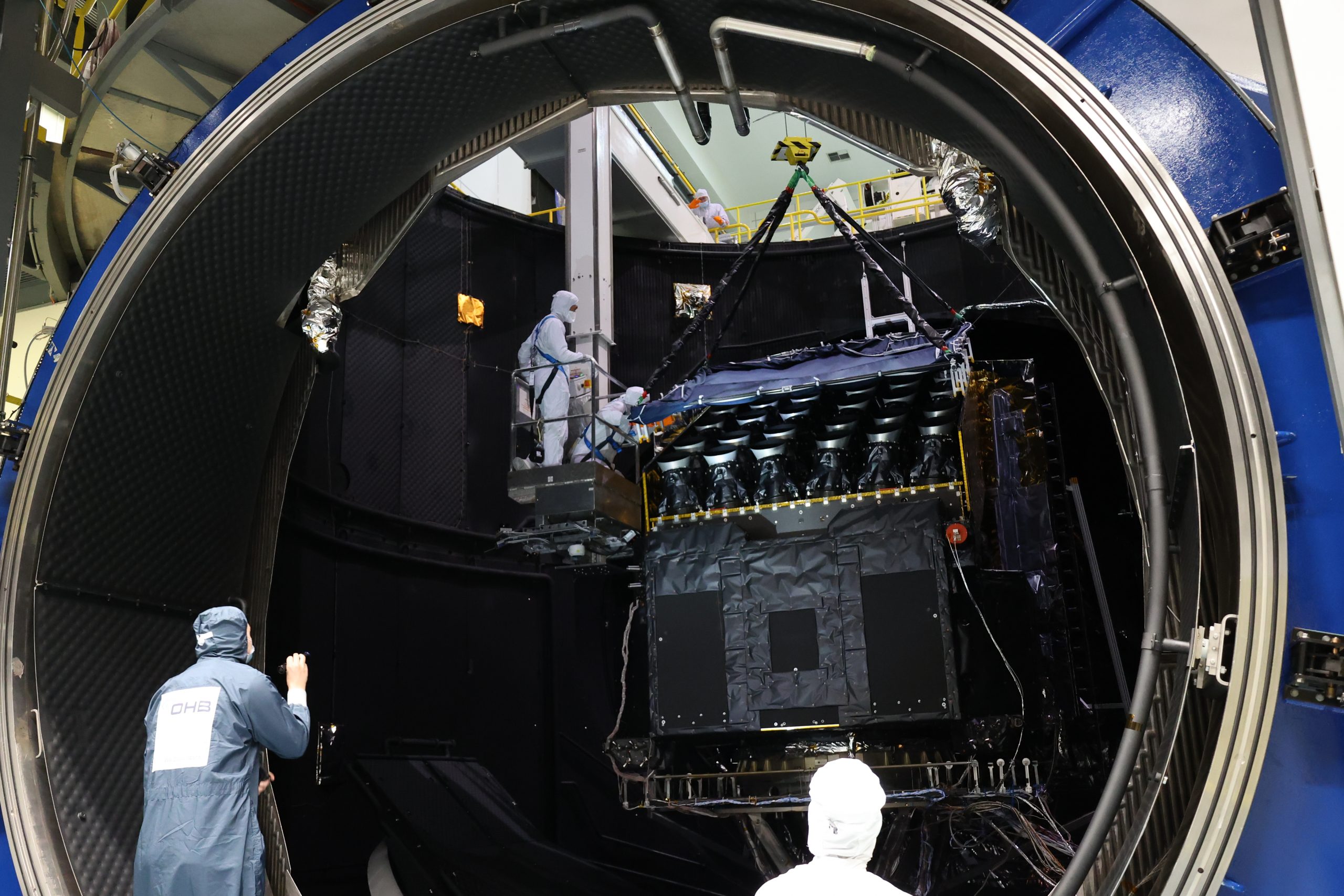 Nel corso delle prove, il satellite è stato sottoposto sia a condizioni nominali sia a scenari più estremi del previsto. L’azoto liquido fatto circolare nelle pareti della camera permette di raggiungere temperature bassissime, mentre esternamente alla camera una griglia di riscaldatori simula l’irraggiamento solare sui pannelli e sullo scudo termico del satellite. Durante la cosiddetta fase “calda”, il lato esposto al Sole ha raggiunto i 150 gradi Celsius. Allo stesso tempo, le fotocamere — protette dallo scudo solare — sono state mantenute tra -70 e -90 gradi Celsius (ovvero tra 70 e 90 gradi sotto lo zero). Nella fase “fredda”, invece, l’intero veicolo è stato raffreddato e i sistemi di riscaldamento interni sono stati attivati per evitare che gli strumenti scendessero sotto le soglie operative.