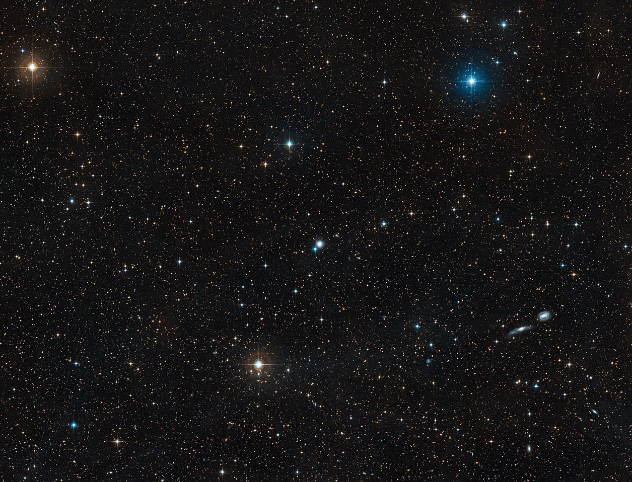 Questa fotografia è stata costruita a partire da immagini provenienti dalla DSS2 (Digitized Sky Survey 2). Mostra la regione di cielo che contiene la galassia attiva NGC 3783 nella costellazione australe del Centauro. La galassia in questione è la spirale che si vede di faccia proprio al centro. (Crediti: ESO/Digitized Sky Survey 2. Acknowledgement: Davide De Martin)